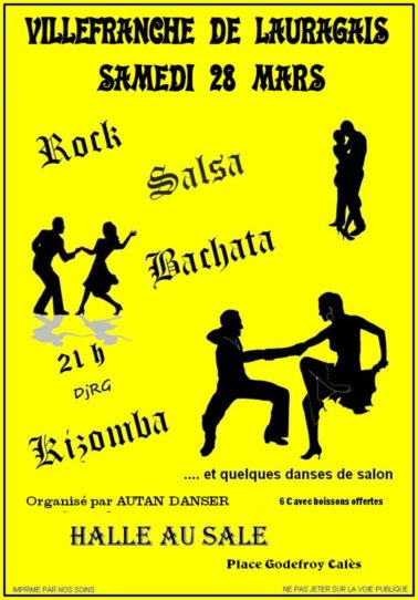 Nouvelle occasion de venir danser surtout Rock et Latino ce samedi à venir 28 mars, à partir de 21h à la Halle au salé de Villefranche. Dj René déroule ses playlist comme d’habitude pour ce genre de soirée. Notre dernière soirée de la saison aura lieu le vendredi 24 avril en « Toutes Danses », avec quelques...Read More